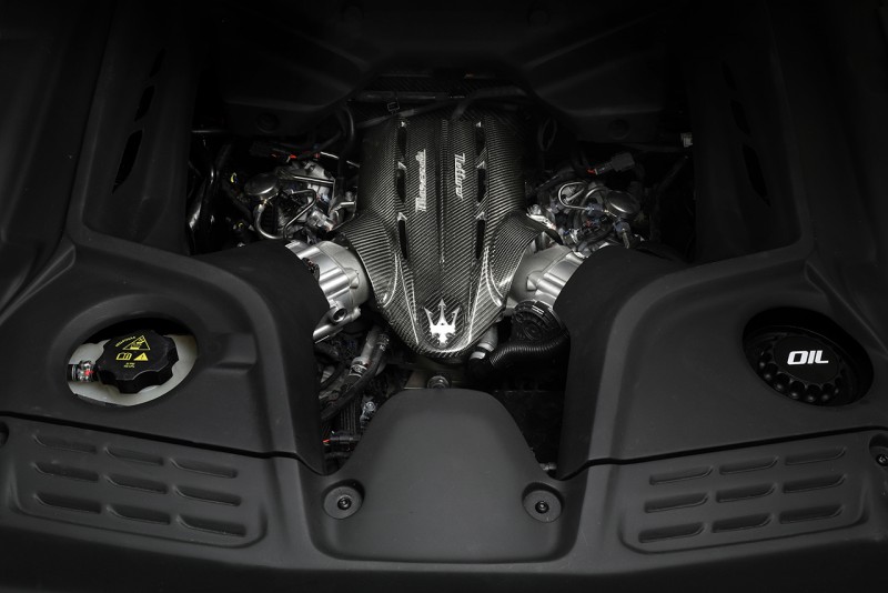 「引擎」决定一辆赛车的能耐;由Maserati Innovation Lab创新实验室及 Via Delle Nazioni 工作室联手设计、并由 Viale Ciro Menotti引擎研发中心开发制造的全新MC20动力核心「Nettuno海王星」:搭载源自F1赛车的顶尖技术,採用3.0L V6双涡轮引擎採90度夹角设计及乾式油底壳;并将双火星塞系统结合预燃烧室 (Pre-Chamber),搭配供油压力高达350bar的双点火系统 (Twin Injection System),达到紊流喷射点火效应Turbulent Jet Ignition(TJI),可于7500rpm爆发630CV最大马力、3000-5500rpm持续输出730Nm峰值扭力,每公升超过200hp的输出功率可谓同级之最,达成2.9秒0-100km/h加速、0-200km/h仅需8.8秒,极速超过325km/h的性能表现。