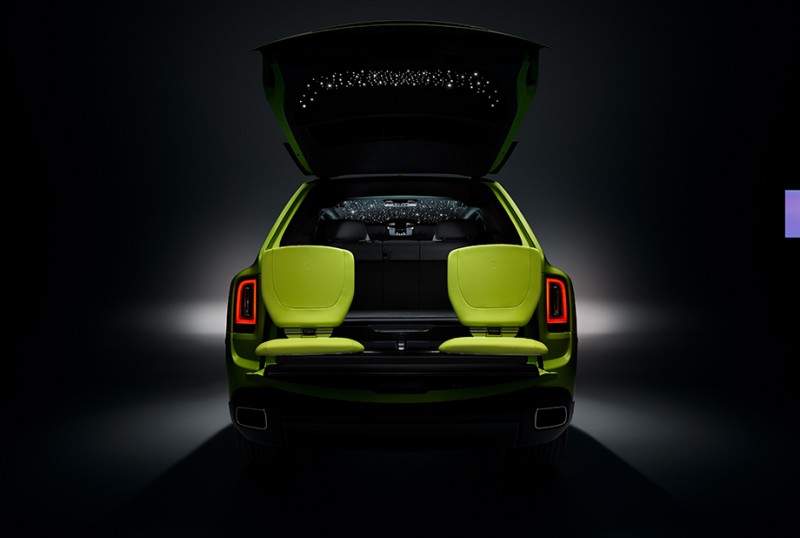 对于「Cullinan – Inspired by Fashion」,设计师们创造了全新的 Starlight Tailgate – 一个令人惊嘆的功能,将 Starlight Headliner 的神奇、星空氛围延伸到汽车内部之外。这一订制功能耗时超过 22 小时,在穿孔皮革中融入了 192 颗柔和发光的星星。星光尾门与观景套房相辅相成,营造出一个完美的环境,让您随时随地享受星夜的迷人美景。
