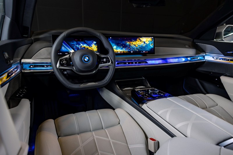 以颠覆众人想像之名,刻划顶级生活质感,全新世代BMW 7系列导入由12.3吋虚拟数位仪表、14.9吋中控触控萤幕所构成的悬浮式曲面萤幕,结合BMW iDrive 8.0使用者介面与整合座舱照明及控制介面的BMW环绕光幕,不只让全新世代7系列的座舱更显前卫高雅,结合SWAROVSKI顶级水晶内装套件(含iDrive控制旋钮、车辆启动钮、音量控制键、全新排档拨桿与座椅调整旋钮)、BMW Individual Merino真皮材质、双前座舒适型电动座椅含记忆通风加热功能与Nappa真皮多功能方向盘、更为座舱带来精湛无比的质感呈现,将豪华以颠覆传统的崭新样貌呈现在众人面前。