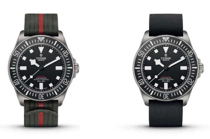 另一个新版Pelagos FXD的细微变化在于织纹表带,帝舵这次替手表配置军绿色搭配中央一道红色线条的一体式织纹表带,这和M25707B蓝灰配色的织纹表带又是一个起眼的差异,如果表主怕织纹表带碰水比较难乾的话,品牌也还另外附上一条黑色浮雕织纹图案的橡胶表带可供替换。