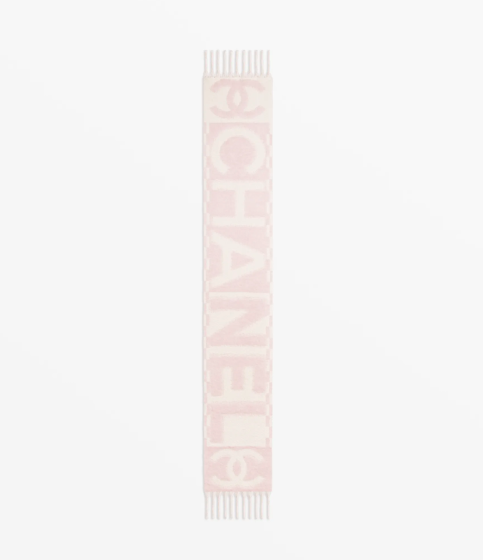 Chanel的2025/26秋冬系列彷彿带我们走进一场带着童话色彩的秀场,透过运用不同材质与比例变化,将蝴蝶结、珍珠、缎带等品牌经典元素重新玩出新的趣味。本季的围巾也不例外,这款以淡粉搭配白色的开士米围巾延续了系列的柔美气质,低饱和的配色让冬天厚重的衣着既保暖又能为寒冷的冬天注入浪漫可爱的法式魅力。