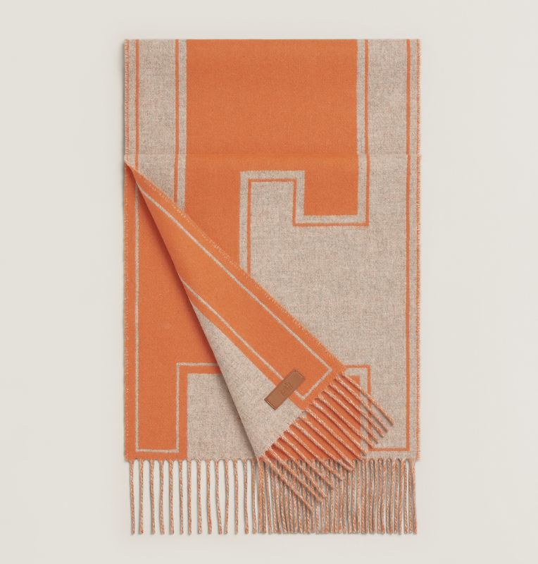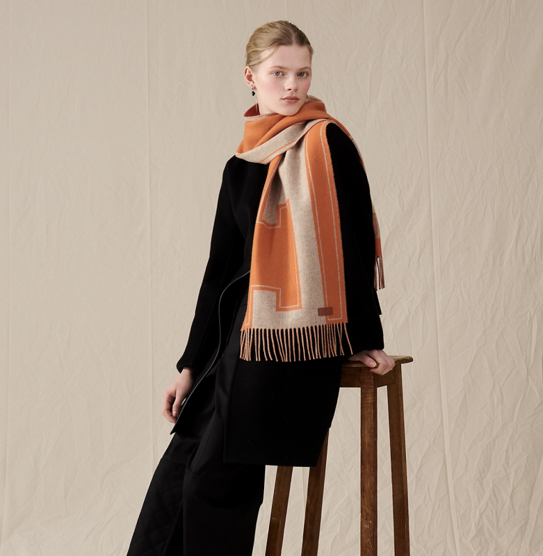 由喀什米尔材质制作的Casaque Clefs de H围巾融合爱马仕最具代表性的马术元素与「H」字母图腾,透过俐落的几何线条与工匠细致的织法呈现优雅不过时的高级感。无论搭配黑色大衣、驼色大衣或极简风格的卫衣,爱马仕经典的橘色配色都能够为冬季穿搭增添老钱魅力,让整体造型更精致自信。