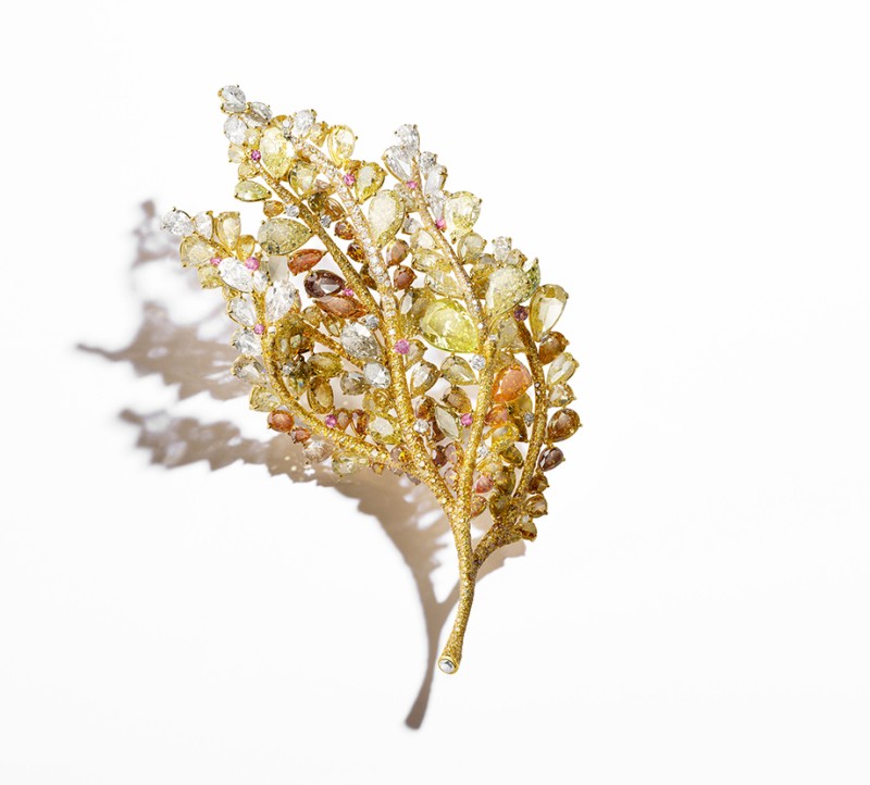 ▲四季系列 树枝胸针。用石:黄钻、白钻、橘黄钻、棕钻、石榴石。材质:18K 白金、18K 黄金