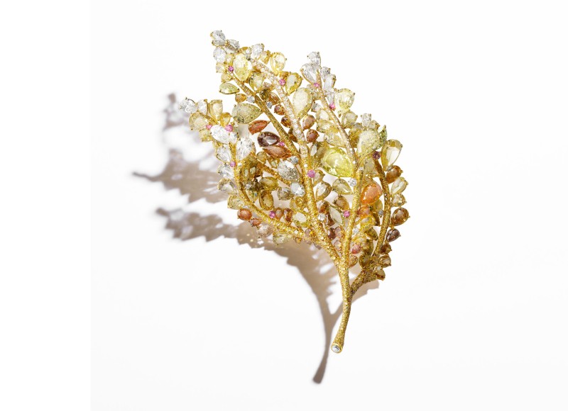 ▲四季系列 树枝胸针。用石:黄钻、白钻、橘黄钻、棕钻、石榴石。材质:18K 白金、18K 黄金