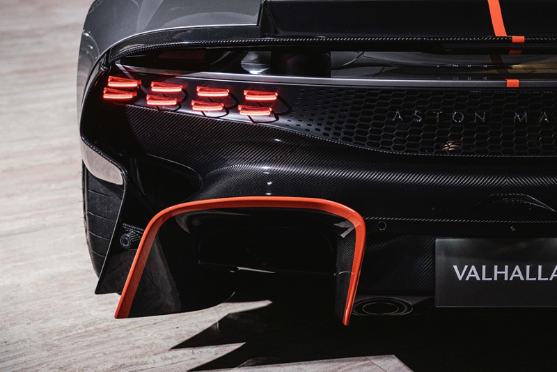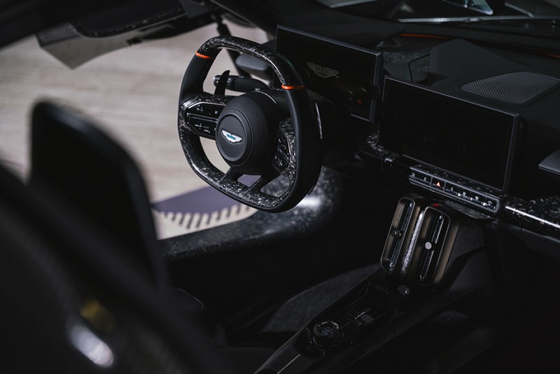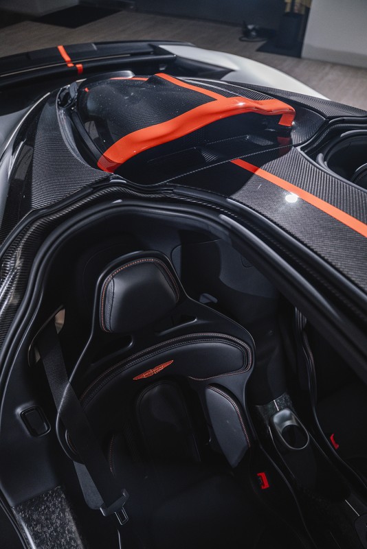 Aston Martin Valhalla的选配丰富,有多项专属客制化细节,包含Q by Aston Martin Spirit Silver活力银漆色、活跃橘外观涂装、亮面交织斜纹碳纤维外观套件、消光钛银色锻造镁合金轮圈等外观细节,搭配满布锻造碳纤维的内装与轻量化桶椅,进一步强化其赛道导向的视觉张力与收藏价值。限量的奥斯顿马丁Valhalla,不仅展现品牌在性能工程上的巔峰实力,更是一件专为少数藏家而生、足以代表 Aston Martin 的划时代杰作。