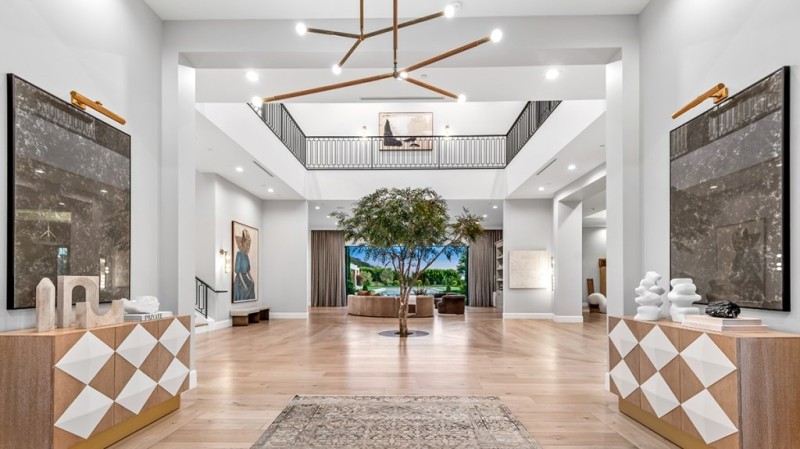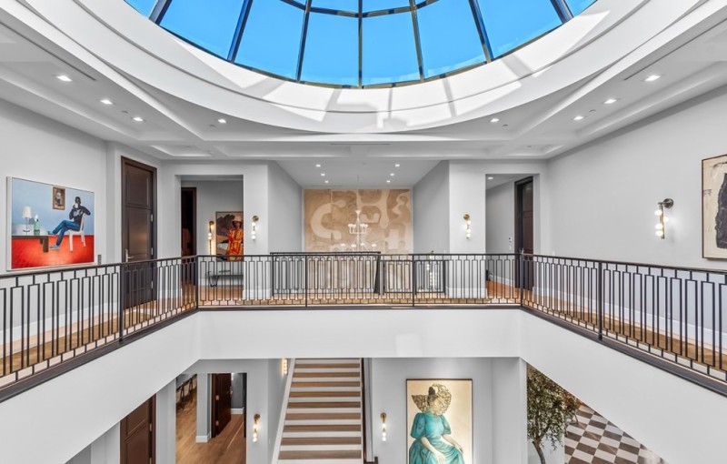 整座豪宅坐落于 3.5 英亩 的私人土地之上,总室内面积达 17,254 平方英尺、约 485 坪,妥妥的是市场中极为稀有的 Trophy Estate 等级。踏入建筑内,最大亮点之一,首先迎接来人的便是那令人仰望的空间气势,是室内中央高达 35 英尺、约 10.6 公尺的圆顶玻璃天花板,自然光线自上方洒落,注入有如欧式宫廷般的通透感与仪式感。