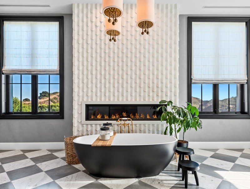 豪宅的核心灵魂莫过于主卧室,大面积开窗引入辽阔景观,将洛杉磯山城视野化为日常背景。特别的是,卧室与浴室之间採用了双壁炉设计,即便是在加州微凉的夜晚,也能感受到温暖的包裹感。SPA 等级的卫浴设备搭配两座超大型步入式衣帽间,完整体现了「极致生活」的定义。