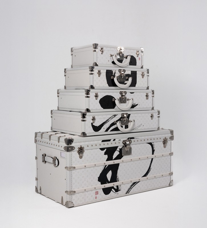▲台湾限定独家硬箱 Louis Vuitton X 董阳孜「日新」、「日日新」、「又日新」书法彩绘五层硬箱塔,NT$5,040,000
