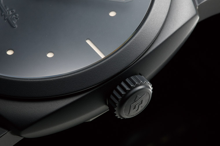 ▲底蓋外圈和錶扣用的是鈦金屬鍍DLC,是一般陶瓷錶款常用的做法;透明底蓋的鏡面做了燻黑處理,統一整體色調,不直接鍍黑機芯零件固然是省了一道工,不過保留零件原本的材質未嘗不是一件好事。
