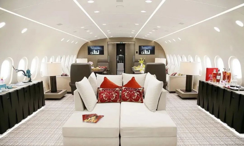 ▲獨特的隔音技術、寬敞的機內空間,讓金鹿公務機波音787成為私人飛機的別墅級機型