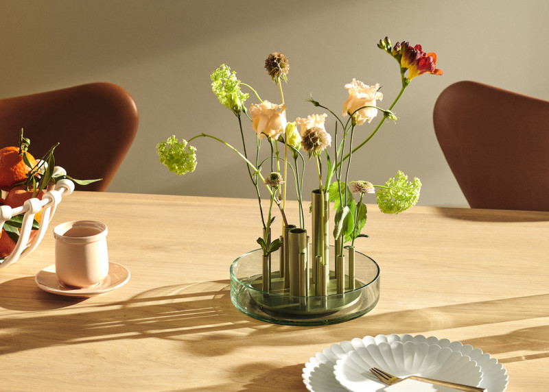 繼 Ikebana 花器之後,西班牙鬼才設計師 Jaime Hayon 再次展現日式花道之美,運用簡單的插花技法創作出 Ikeru 花器。 高高低低的金豎笛管,為朵朵花兒建造美麗的家,底部的玻璃圓盤則可注入清水,延長花朵的生命,持續零死角的綻放迷人之姿。Ikeru 邀請您一同欣賞自然的奧妙,分享獨具韻味的花藝設計。