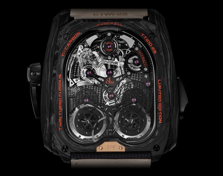 ▲Twin Turbo Furious 300+的錶殼以鍛造碳和DLC鈦金屬製成,充滿前衛科技風格,同時手錶本身的功能也很驚人,集結三問、雙重三軸陀飛輪與計時功能等。