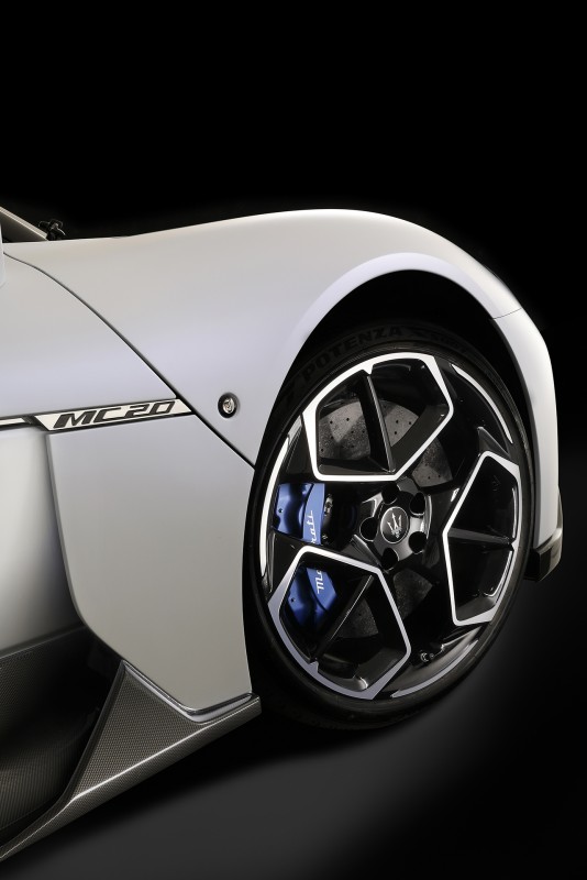 MC20研發工程耗時 24 個月,設計之初便規劃雙門和敞篷兩種應用版本,並且要能夠符合純電動力需求,由Maserati 創新實驗室的工程團隊、引擎實驗室的技術專家、以及時尚中心的設計師,共同以創新思維投入設計。配備令人驚艷的蝶翼式側掀車門,整體外型設計可說是空氣力學與工藝美學的巔峰之作。
