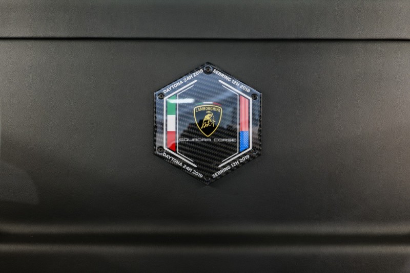 內裝部分,就如同一般賽車一樣講究輕量化,大量使用Alcantara麂皮及碳纖維飾板點綴新的桶型賽車座椅。呼應車外塗裝,選擇與外觀相同的紅色縫線,兩張座椅中央則鑲上與車頂相同的六角型蠻牛徽飾。