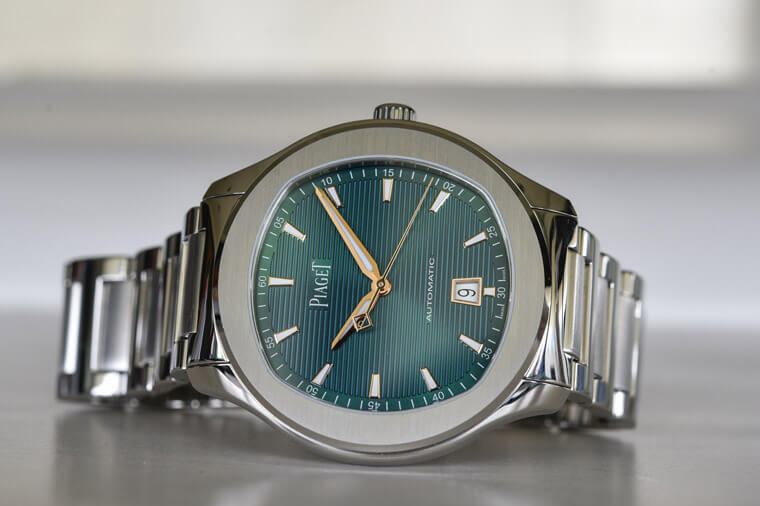 新款Polo系列孔雀綠面盤不鏽鋼自動錶除了具有圓中帶枕型的錶殼造型,面盤還飾有立體化的水平條紋,這一來能讓綠色在光線的照射下產生豐富的光影之美。事實上伯爵曾經在2019年推出孔雀綠面盤款式,不過當時錶款配置的是皮帶,2020年伯爵延續綠色面盤的好口碑再推出換搭不鏽鋼鍊帶的新款,由此更能強化手錶的運動個性以及耐用度。此外有別於2019年版本,這款的時標、指針和日期窗邊框都鍍上玫瑰金色,藉由玫瑰金的溫潤視覺效果,讓孔雀綠面盤更具躍動的視覺層次感受。這款Polo系列孔雀綠面盤不鏽鋼自動錶如同2019年的綠面款般採限量發行,不過上一款綠面限量數只有500只,2020年伯爵則是替鍊帶款的限量數提高到888只。Source:Watchlounge