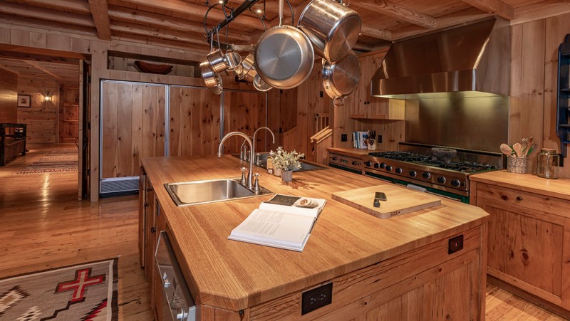 莊園裡的房子是兩層樓建築的主屋以漂白的雪松木材和天然石材覆蓋,以客廳起居室為中心,擁有巨大的石壁爐、裸露的橫樑和環繞式窗戶,室內室外都可以欣賞到百萬美元的山景。因為高度夠高,甚至可以俯視進出Telluride機場的私人飛機。