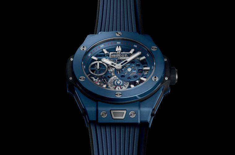藍色陶瓷材質/HUB1201手動上鍊機芯/時、分、小秒顯示/動力儲存顯示/藍寶石水晶鏡面、透明底蓋/防水100米/錶徑45mm/參考價:NT$ 684,000