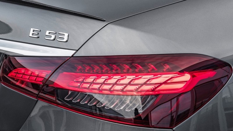 2021 Mercedes-AMG E53 4MATIC+前臉設計以引擎蓋隆起運動化造型,配合AMG專屬直瀑式水箱護罩、全新設計的LED頭燈、前保桿下緣鍍鉻飾條,以及八字型前氣壩採雙層立體線條、兩側高光澤飾板面積加大,強調運動化的同時更顯前衛。車尾全新內部設計的分離式尾燈、全新後擾流裙,以及可切換不同模式的 AMG 高性能排氣系統附專屬四出圓形尾飾管。足下為19 吋 AMG 五輻雙肋式輕合金輪圈,用簡潔細節表達強大實力。