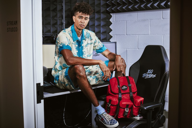 為了重點宣傳了全新合作系列後背包及其賦有的意義,並且將100 Thieves旗下活力四射的成員介紹給Gucci的社群粉絲,來自紐約的攝影師兼導演Guy Aroch攜手100 Thieves的七名內容創作者Valkyrae、Neekolul、BrookeAB、Nadeshot、CouRageJD、Yassuo和Kris London以及兩位職業選手Ssumday和Kenny,為這款特別單品拍攝了一組形象廣告,記錄大家在100 Thieves的世界級電競辦公室「Compound」的一天。
