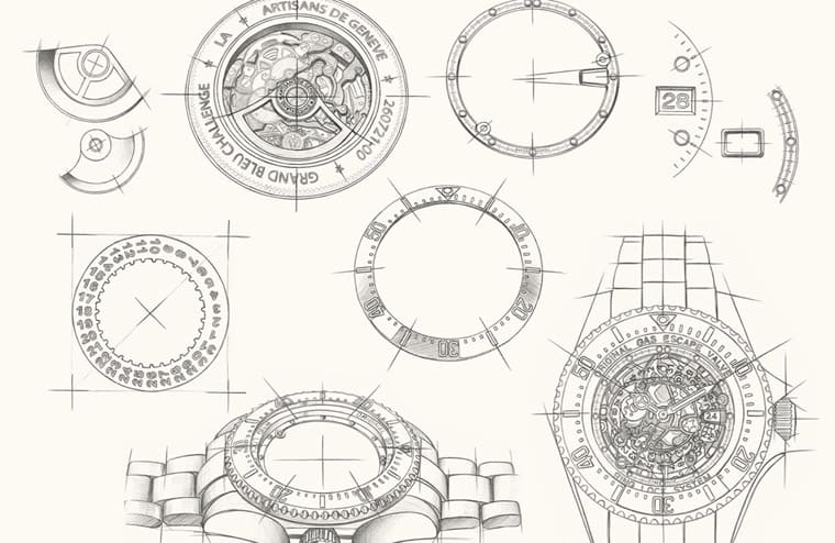 ▲Deepsea 116660 “Grand Bleu”的設計草圖,手錶的改造重點在此可以略窺一二。Source:Artisans de Genève