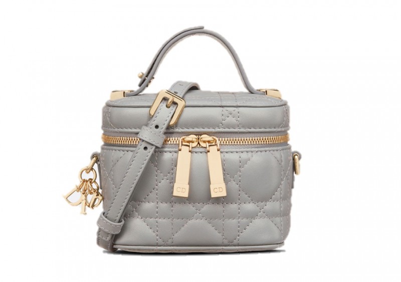 Lady Dior 灰色籐格紋小羊皮微型化妝包 NTD58,000。