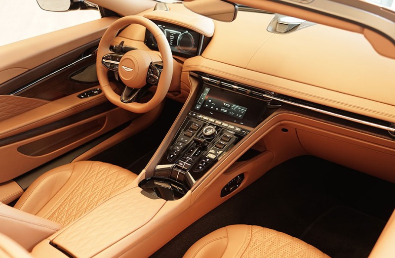 內裝方面,DB12 Volante 採用 10.25 吋觸控螢幕,具備全電容式的單指、多指手勢控制。透過無線 Apple CarPlay、Android Auto 及 Aston Martin 推出專為 iOS 和 Android 系統開發的全新 APP,車主可透過手機與 DB12 Volante 進行暢行無阻的互動。實體按鍵一向提供優異的豪華回饋感受,而 DB12 車系實現觸控螢幕與實體按鍵的完美平衡,包括排檔桿、駕駛模式選擇、懸吊控制、ESP、排氣閥門、車道輔助系統與通風椅等皆保留實體控制鈕,確保操作頻繁之按鈕觸手可及且符合人體工學。