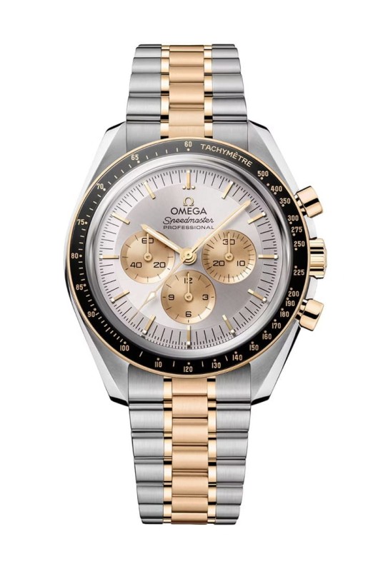 ▲歐米茄以不鏽鋼分別搭配Moonshine™金或Sedna™金,呈現出登月錶少見的雙色組合。