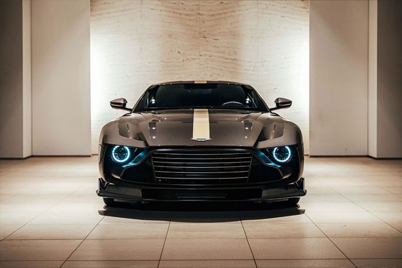 Aston Martin Valour車身尺碼為車長4599 mmX車寬1987mmX車高1274 mm,軸距2703 mm。外觀靈感源自1970年代經典 V8 Vantage 與 1980 年RHAM/1 ‘Muncher’ Le Mans 賽車,車頭的經典蚌式引擎蓋設有大型馬蹄形及雙NACA進氣口,為V12引擎引入充足冷空氣,而經典漆色 Cumberland Grey、Pearl Bronze車身中央單飾條則來自Q by Aston Martin 特殊訂製部門。全新設計經典水箱護罩兩旁垂直碳纖維進氣口為引擎和剎車提供散熱通道,配合Valour獨有的圓形LED大燈,表現前衛感。團隊精算氣流強化車身穩定性,前下擾流、葉子板大型通風口與後擋格柵,優雅上揚的Kamm Tail車尾造型則與後下擾流形成下壓力,達到空氣動力學完美平衡。Valour的尾燈造型呼應品牌旗艦超跑Valkyrie,每側六盞LED燈片坐落於實心鋁製材質加工的飾條內,隱藏在碩大後下擾流的三出排氣系統則由極為輕薄、管壁厚度小於1mm的不銹鋼製作而成,減少了7公斤重量。
