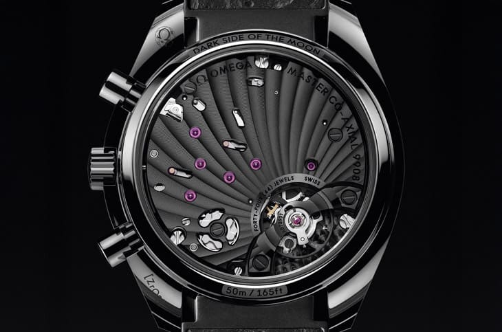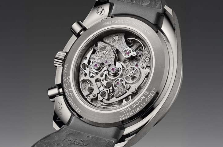 ▲超霸月之灰面的鏤空面盤呈現月球近面效果,透過錶背可見月球暗面,靈感源自阿波羅8號觀察紀錄。