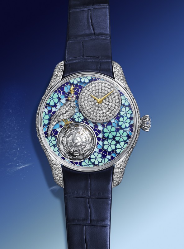 ▲Bird on a Flying Tourbillon Azure Blossom 飛行陀飛輪腕錶