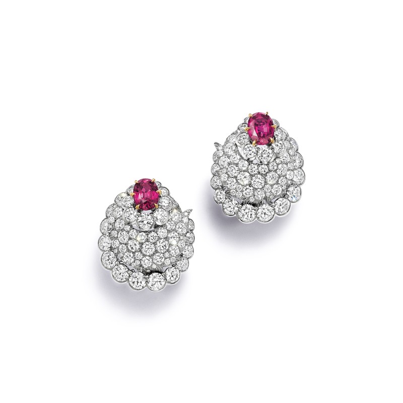 ▲Jean Schlumberger by Tiffany 珍珠石上鳥耳環