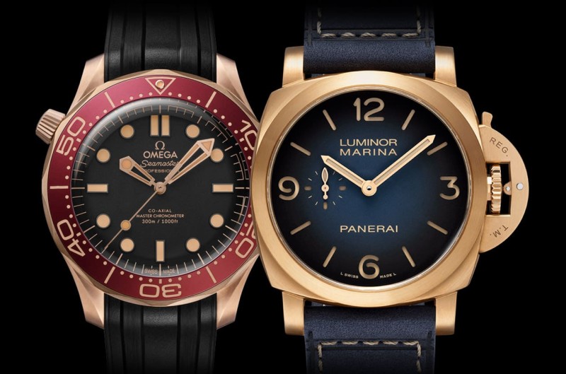 近期錶壇有兩款作品同樣聚焦青銅系材質,包括OMEGA海馬潛水300米青銅金款式,以及PANERAI Luminor Marina 青銅錶PAM01678,前者透過「青銅金」合金控制氧化,維持優雅光澤,兼顧奢華質感與實用穩定;後者則擁抱傳統銅錫合金的自然氧化,讓歲月痕跡成為錶殼的標誌性特徵,彰顯軍用工具錶的粗獷個性。兩者皆採用簡潔無日期的面盤設計,以突顯材質本身的視覺張力。將這兩款青銅運動錶並列比較,能清楚感受「永恆光澤」與「歲月印記」在現代錶款中的不同詮釋,也呈現了高級運動錶在設計理念上的多樣化。