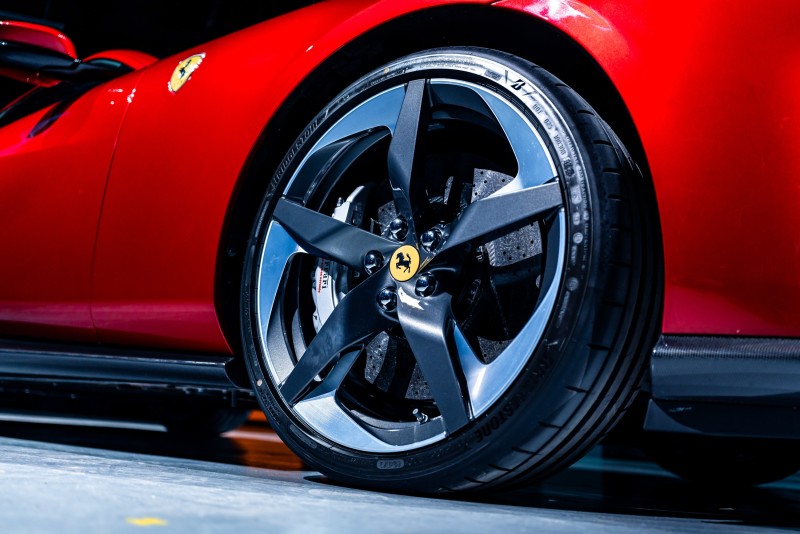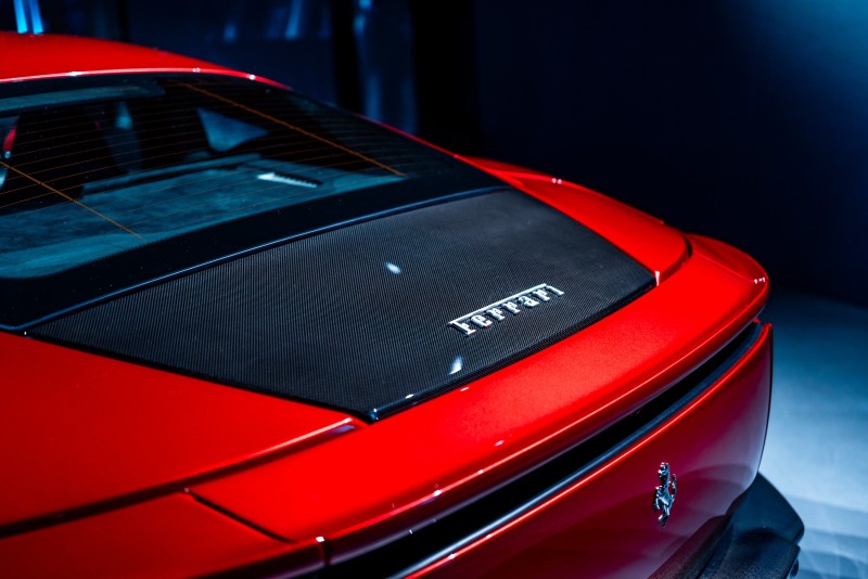 在空氣力學設計上,Ferrari Amalfi 再次展現了造型與功能之間的完美平衡,車頭產生的下壓力來自一對在風洞中優化調校的渦流產生器,以及與分流器巧妙結合的兩組擴散器。值得一提的是,這兩組擴散器同時為前煞車系統提供更出色的通風表現。而與車尾線條完美契合的主動式活動擾流板無疑成為車尾設計的一大亮點,其位置能依據車輛時速、縱向與橫向加速度自動調整,具備三種高度設定:低風阻(LD)模式、中等下壓力(MD)模式及高下壓力(HD)模式。當直線行駛時,擾流板會維持在低風阻或中等下壓力模式,以盡可能降低風阻;而在高速過彎或緊急煞車等更加動態的駕駛情況下,則會切換至高下壓力模式,當車速達到 250 km/h時,能額外產生多達 110 公斤的下壓力,而風阻的增加幅度則低於 4%。