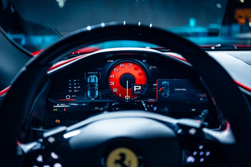 進入座艙內裝,Ferrari Amalfi 延續雙座艙配置,搭載配備實體按鍵的全新方向盤設計,左側標誌性鋁製啟動按鈕的經典回歸,重現更具觸覺回饋的操控手感。整合式中央顯示螢幕與空調出風口完美融合,以簡潔流暢的造型語彙呈現一體式視覺結構,中央鞍座更巧妙地融入換檔結構、鑰匙插槽、無線充電板及其他輔助控制功能,兼顧實用性與洗鍊設計感。