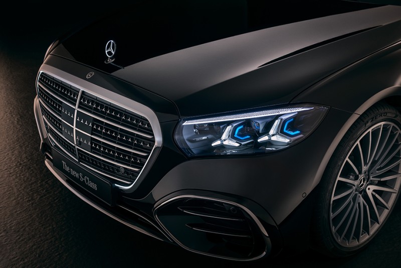 Mercedes-Benz S-Class以更加動感的車身輪廓彰顯其尊貴地位,首次搭載了尺寸增大約20%的發光格柵,以及重新設計的立體鍍鉻三芒星車徽,可選裝自發光令車輛在夜間熠熠生輝。全新 DIGITAL LIGHT 雙星頭燈設計不僅在白天和夜晚都呈現出標誌性的外觀,更提升了視野。動態超遠光燈照射距離可達600公尺,結合攝影機數據和地圖智慧技術,彎道照明功能能夠更精準。車尾部分,全新設計的尾燈搭配三顆鍍鉻邊框的標誌性星徽,強化了 S-Class 轎車的獨特身份,令人印象深刻。此外,側裙飾條內整合的投影燈可將「Mercedes-Benz」字樣投射到車身兩側,營造出獨特的照明效果。足下首次搭載20吋多輻輪圈,採用創新高壓鑄造工藝打造,呈現無與倫比的精準度和設計感。這款多輻輪圈運用創新高壓鑄造技術,擁有更銳利的輪廓、更纖薄的厚度以及引人注目的50根交叉輻條設計,與車身精緻優雅相得益彰。輪圈採用Tremolit金屬高光澤飾面,是追求個性與永恆風格人士的理想選擇。