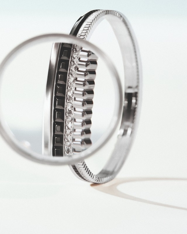 經典Quatre系列戒指化為Mini款式,尺寸更為精巧,卻絲毫不減其存在感。相較窄版系列更加纖細,依然珍貴如初,忠實延續系列標誌性的四大經典元素。與此同時,Quatre Black系列窄版手環亦加入陣容,延續其鮮明而富有力量的圖形美學。