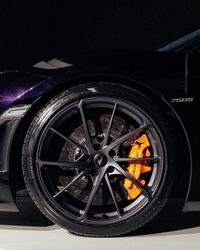 這部專屬於 Piastri 的 McLaren 750S Spider,最令人目不轉睛的莫過於其獨特的車色。這並非傳統的曜石黑或競賽紅,而是由 MSO 部門耗時數月、精心調製的極深紫色烤漆。看似冷冽黑色外觀,在陽光下顯現出神祕的深紫,這種色澤被車迷與媒體戲稱為「Piastri Purple」,精準地捕捉了這位賽車手冷靜克制、卻又在賽道上充滿爆發力的雙重人格。而隱藏在黑色輕量化輪圈後方的,則是顯眼的橘色煞車卡鉗,這抹色彩不僅是視覺焦點,更是對 McLaren 經典「Papaya Orange」精神的致敬,象徵著 Piastri 血管裡流淌著的橘色賽車血液。