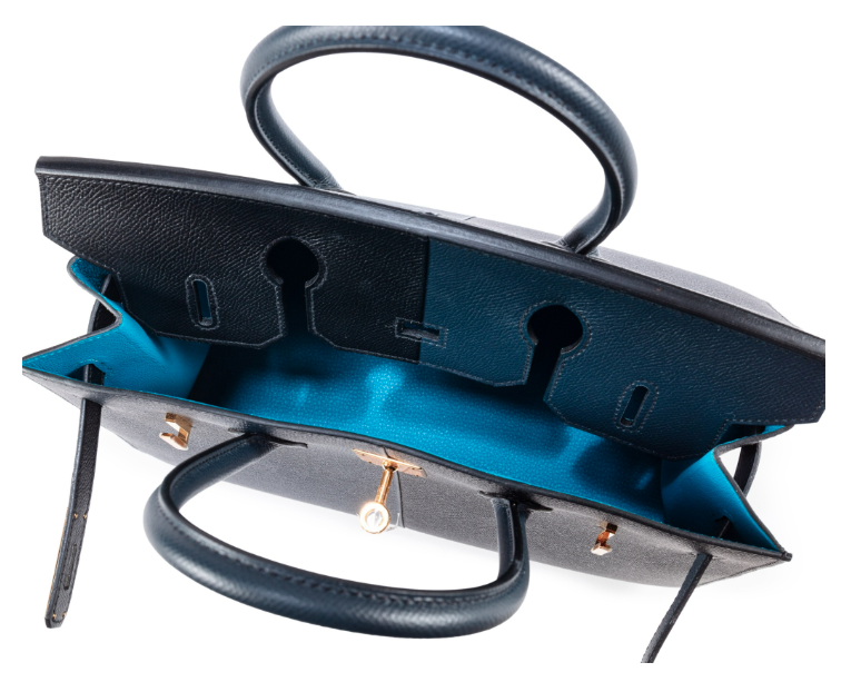 半個世紀以來,橘盒子伴隨著每一只 Birkin 或 Kelly 包,構築了世人對愛馬仕的第一印象。橘盒起源於二戰期間的物資短缺,卻意外成就了品牌最鮮明的標識。然而,愛馬仕在追求卓越的道路上從未止步,為了區隔「經典」與「稀有」,品牌特別設計了藍色內裡的特殊包裝,承載那些超越常規的夢幻逸品。外觀延續了經典的防偽橘色塗層與棕色絲帶,但當掀開盒蓋,映入眼簾的是深邃且充滿質感的深藍色(Midnight Blue)內裡,愈能烘托包款的特殊性與稀缺感,讓開箱過程儀式感倍增。