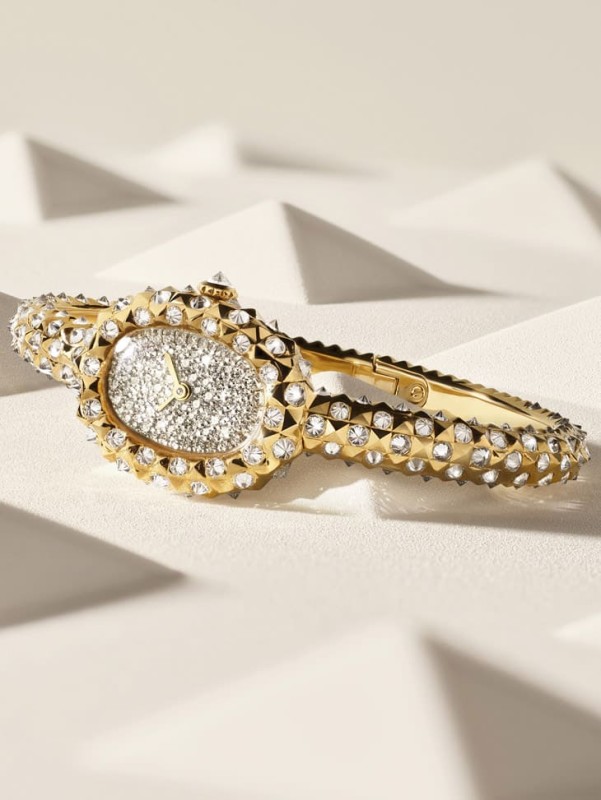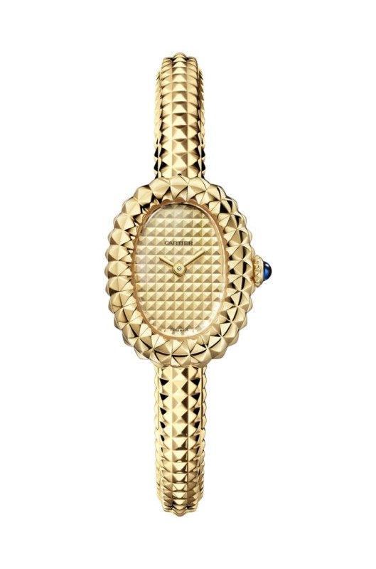 Baignoire一直是卡地亞女錶中的經典,2026年則加入了巴黎飾釘紋,讓整體更有建築感,這種紋理本來就常見於珠寶,但應用在弧形錶殼與手環上,需要重新計算比例與曲率,結果是什麼?是一種帶有節奏感的光影變化,鑲鑽版本更有趣,中央採雪花鑲嵌,而錶殼邊緣則用倒置鑲嵌,把鑽石的尖端朝上,創造出立體幾何效果,這種設計既前衛又和諧,很難模仿。