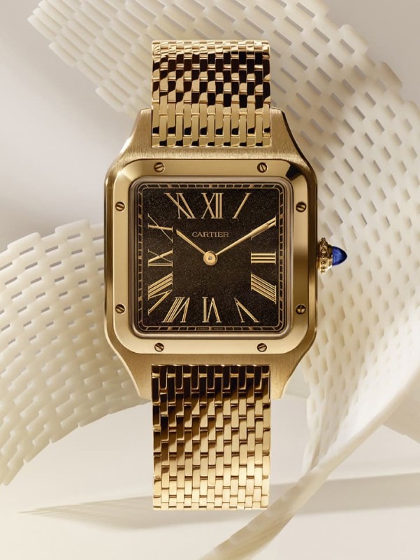若說Roadster是動態的,那Santos-Dumont就是靜態的極致,這款與飛行先驅阿爾伯特·山度士–杜蒙密不可分的手錶,2026年依舊維持它一貫的纖薄與優雅,但細節卻更有層次,包括羅馬數字時標、錶圈外露螺絲、寶石錶冠,這些經典元素都在,但整體氛圍更偏向1920年代的復古風格。真正的亮點,是那枚金曜石面盤,這種來自火山岩的材質,本身帶有天然氣泡,在光線下會產生虹彩反射,每一枚都不可能完全相同,更誇張的是,卡地亞將它打磨到僅0.3mm厚,幾乎像玻璃一樣薄,這不只是設計,而是工藝挑戰。另一個不能忽略的,是那條金質多鍊節錶鍊,由394枚鍊節組成,厚度僅1.15mm,佩戴起來幾乎像絲綢一樣滑順,這種「貼合感」,其實是卡地亞在珠寶領域長年累積的優勢,現在被完整移植到手錶上,錶款搭載430 MC手上鍊機芯,7.3mm的整體厚度,這種比例與質感的平衡,很難在其他品牌看到。