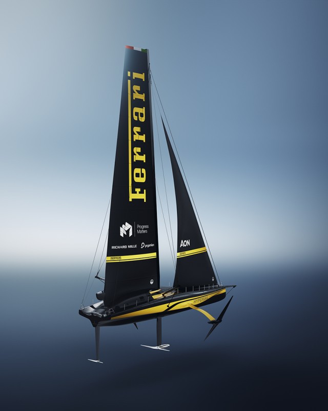 這艘法拉利帆船選用的配色方案是 Nuovo Giallo Fly黃色,應用於駕駛艙、水翼和船體線條,令人聯想到法拉利最負盛名的車型風格,鮮明地展現了品牌的 DNA,帶來視覺上的震撼,也是透過塗裝設計向品牌的「第二靈魂」致敬。黃色是一種蘊含豐富歷史底蘊的黃色,與法拉利的淵源,可追溯至品牌創辦人恩佐·法拉利(Enzo Ferrari)的好友、已故車手路易吉·穆索(Luigi Musso)的標誌性的黃色頭盔,其遺孀菲亞瑪·布雷斯基(Fiamma Breschi)的直覺而被運用在經典的 275 GTB。